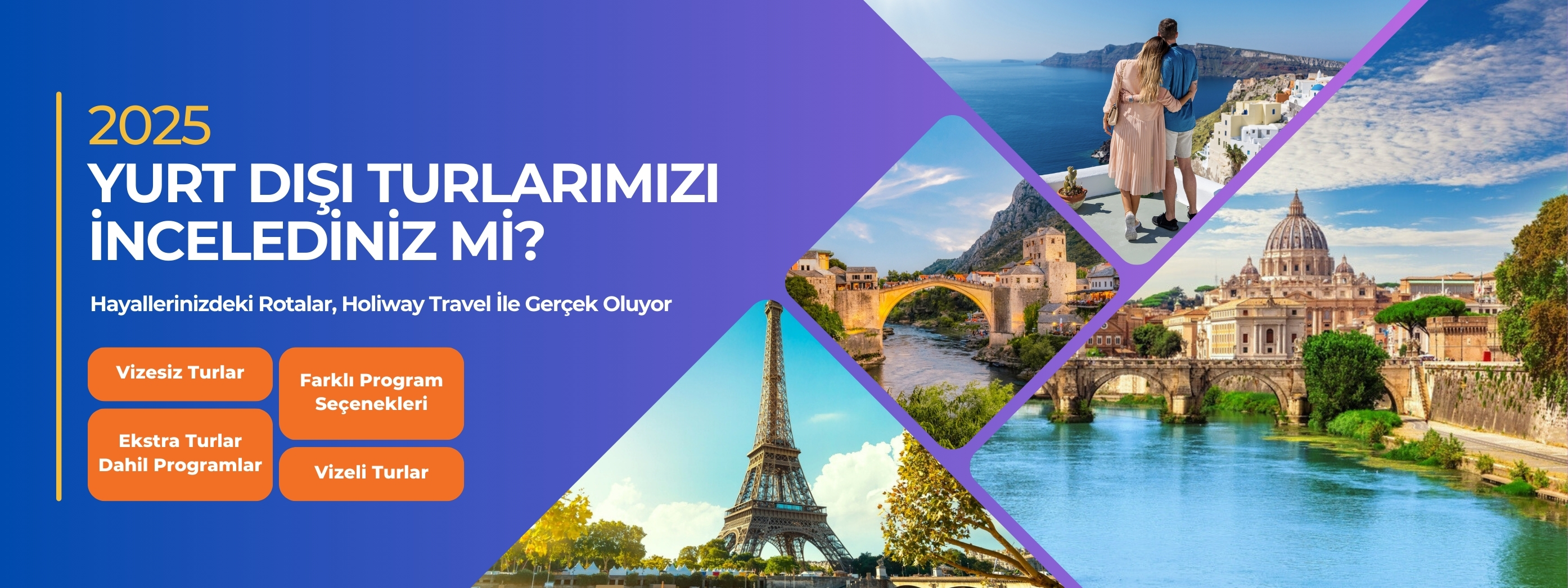 Holiway Travel Ayrıcalığı ile Yurtdışı Turları Tatil planları yapılırken renkli yurtdışı rotaları ile sizlerleyiz. Holiway Travel kalite ve uzmanlığı ile sizler için Aktarmasız direkt uçuş konforu ile yurtdışı seyahatlerinizde sizlerin yanındayız.